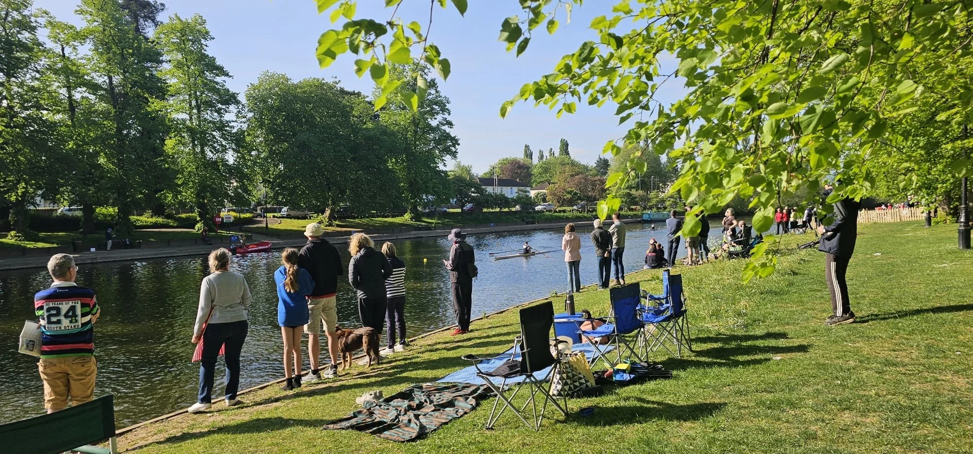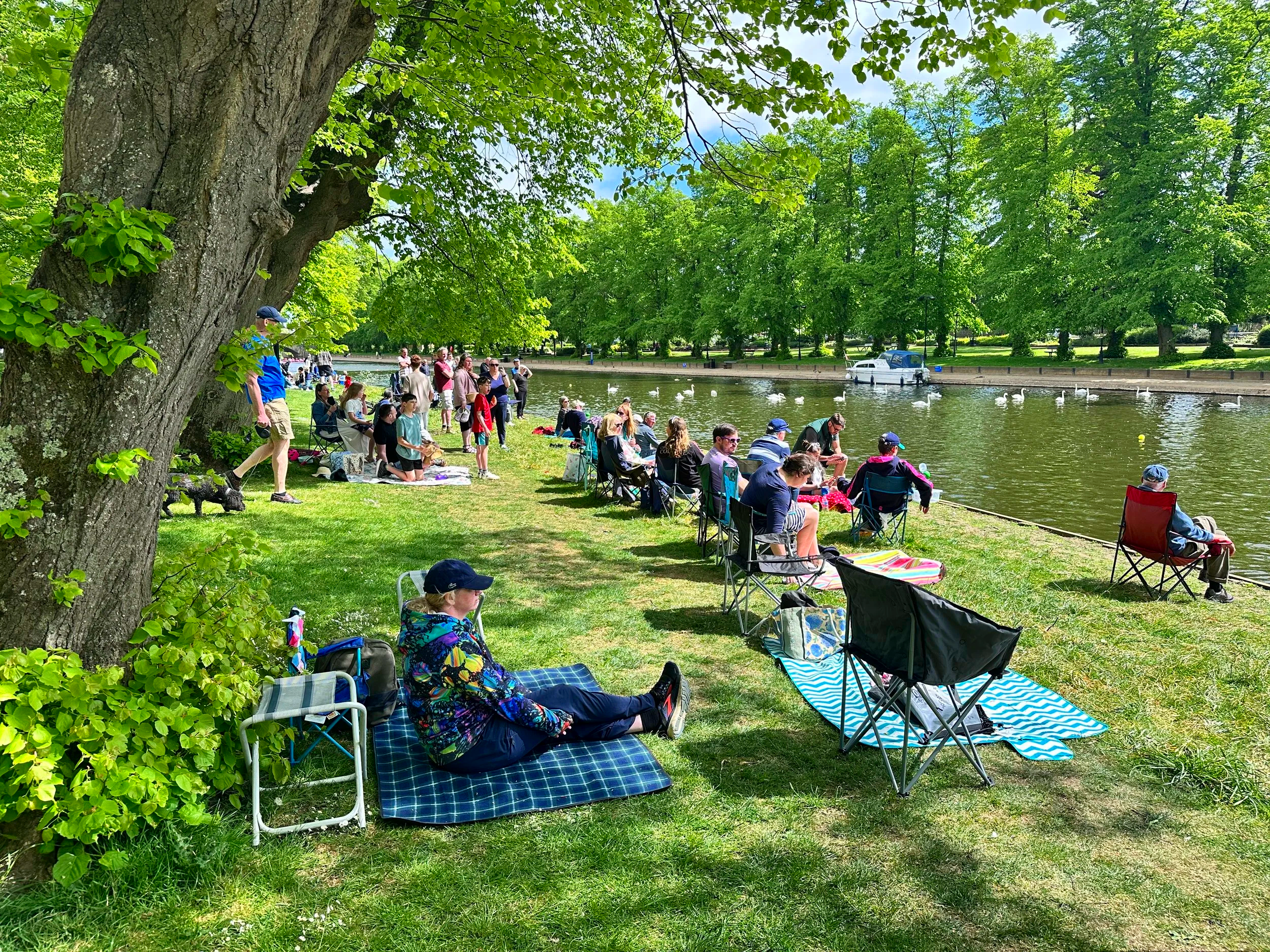 A buzzing riverside atmosphere with music, commentary and crowds